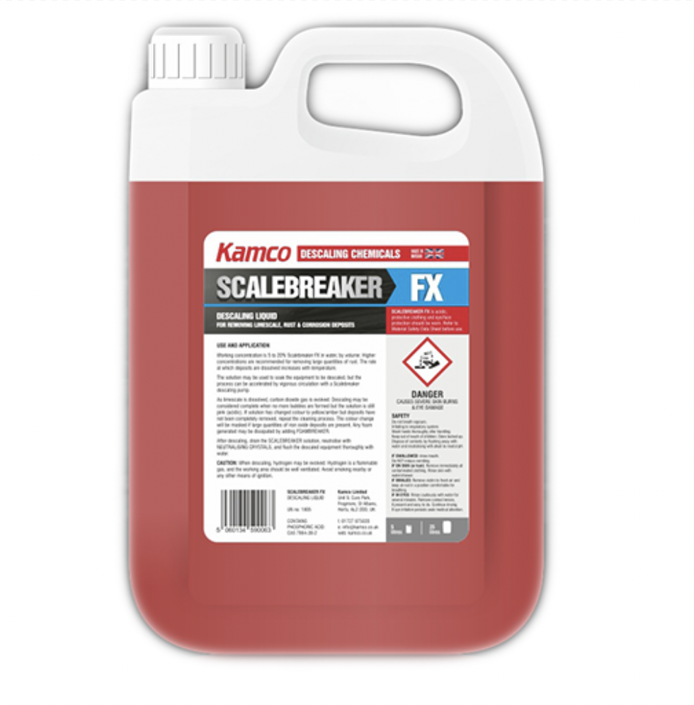 Scalebreaker FX is a powerful descaling agent designed to remove scale and rust in heating and cooling systems. It provides effective cleaning of pipes, heat exchangers, and boilers, improving system performance and lifespan. Perfect for use in industrial and commercial facilities.